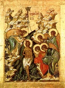 И вот к нему приходит Иисус из Назарета. Иоанн, считая себя недостойным крестить Иисуса, стал удерживать Его, говоря: «Мне надобно креститься от Тебя, и Ты ли приходишь ко мне?». Но Иисус сказал ему в ответ: «Оставь теперь; ибо так надлежит нам исполнить всякую правду» (Мф. 3, 14-15).