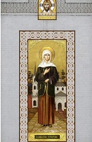 А недавно в нашем храме началась подготовка к созданию мозаичной иконы блаженной Ксении Петербургской на алтарной стене. Представляем вашему вниманию проект, именно так специалисты и мы видим исполнение иконы. Первые шаги по его исполнению уже сделаны, в конце июня положили раму для иконы. Ее орнамент основан на рисунке, соседствующего с ней белого камня. По общему мнению прихожан, получается очень красиво. Надеемся, что и общий результат будет впечатляющим!